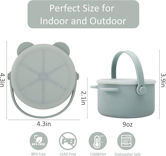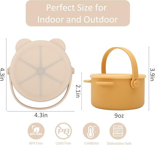 Snack Cups for Toddlers, Baby Snack Containers,Silicone Toddler Snack Cups No Spill, Food Catcher with Lid & Bucket-like Handle, BPA Free & Dishwasher Safe, 9 Ounce Milieu