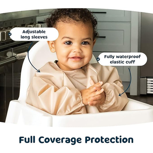 Long Sleeve Baby Bib - Mess-Proof Feeding Bibs for Babies - Adjustable, Waterproof, and Highchair/Table Attachment
