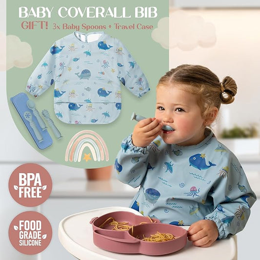 Baby Coverall Bib - Waterpoof Bib with sleeves - Smock Bibs for Babies - Bibs for Toddlers 1-3 years