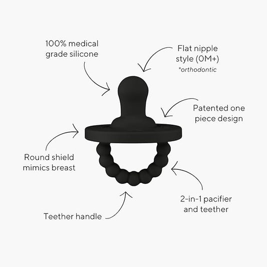 Ryan & Rose Cutie PAT Pacifier Teether 3 Pack and Flex Clip (Flat, Black)