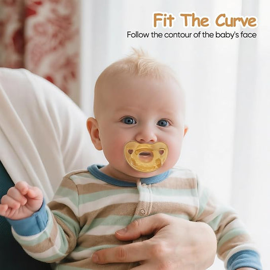 Pacifiers Natural Rubber Set of 2, Cute Baby Pacifier, with Handle & Air Holes for Added Safety, BPA-Free Soothers, Size 0-6 Months (Moon Flat)