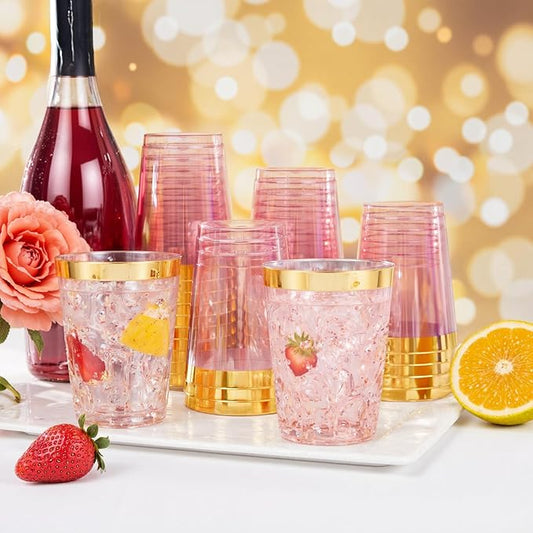 supernal 100 Pcs Pink Plastic Cups,10 Oz Clear Pink Disposable Cups with Gold Trim,Plastic Cocktail/Drink/Bridal Shower/Baby Shower Cups for Party,Wedding and Birthday,Cute Disposable Cup