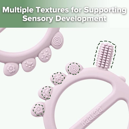 haakaa Silicone Twin Flower Teether,Nipple-Shaped End for Gum Massage,360° Baby Toothbrush Head for Self-Brushing Training,Easy to Grip - Lavender