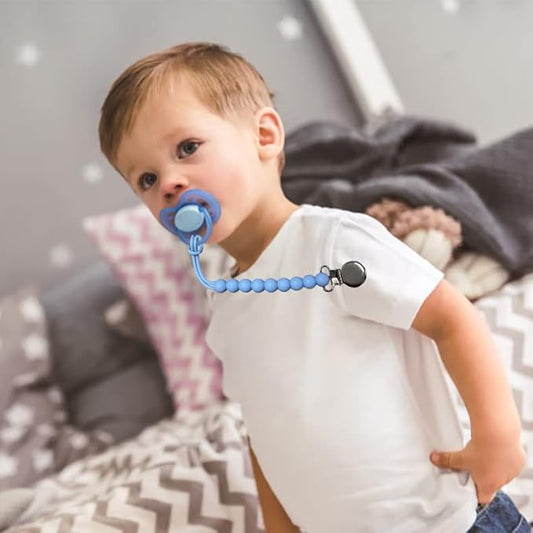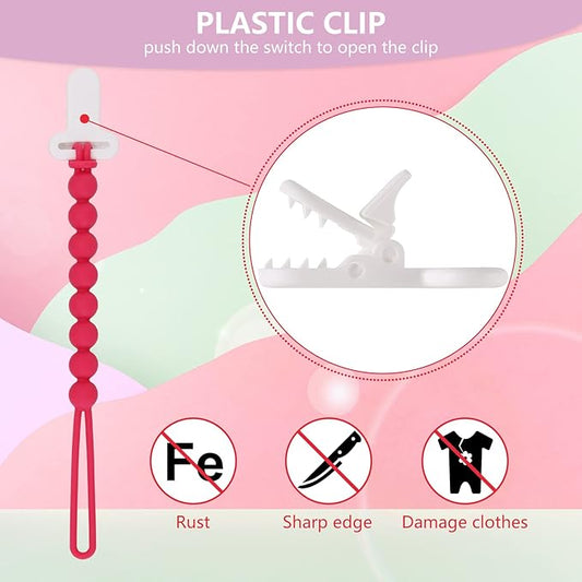 6-Pack Silicone Pacifier Clips for Babies, Safe Teething Beads, Rust-Free Holders, Baby Boy and Girl Essentials, Newborn Must-Have Accessories, BPA-Free