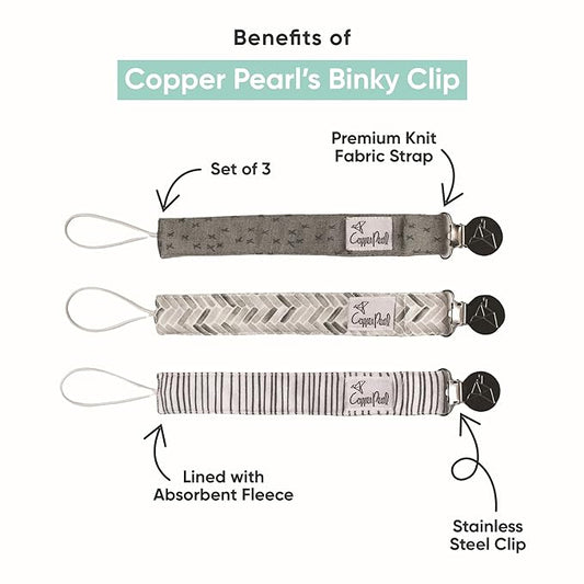 Copper Pearl Pacifier Clip 3-Pack: Premium Knit Binky Clips for Baby Girls and Boys - Stylish Stainless Steel Pacifier Holder Clip - Baby Pacifier Clips for No More Floor Drops - Bridger