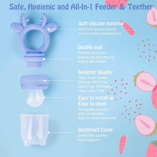 Baby Solids/Frozen Fruit Feeder Pacifier, Infant Teether Toy 4M+, BPA-Free Silicone Pouch & Nipple, Safely Introduce Solids, Teething Relief, 2-Pack (Deer - Green Purple, S/M/L)