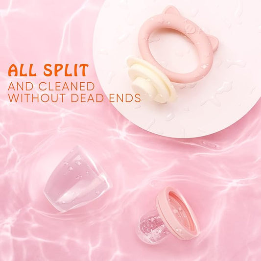 Baby Fruit Food Feeder - Silicone Nibble Tray Combo - Breastmilk Popsicle Mold for Cooling Relief, BPA Free Mesh Feeder for Infant Self Feeding (Claw Pink + Pineapple)