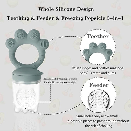 Baby Fruit Food Feeder - Silicone Nibble Tray Combo - Breastmilk Popsicle Mold for Cooling Relief, BPA Free Mesh Feeder for Infant Self Feeding (Claw Beige + Pineapple)