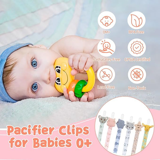 Babygoal Animal Pacifier Clips, 6 Pack Binky Paci Holder and Leash for Boys and Girls Fits for Most Pacifier, Binkie Styles & Baby Teethers & Toys and Gift 6PB04