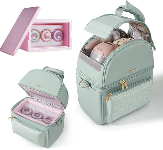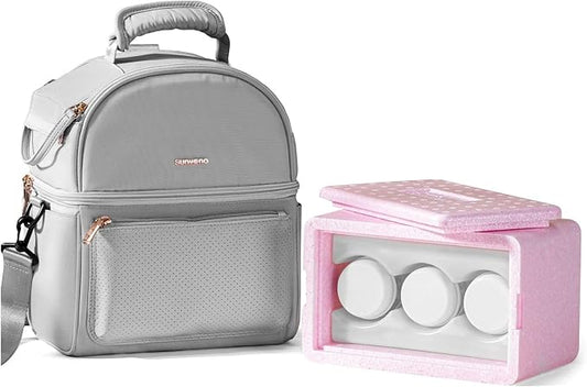 Sunveno Breastmilk Cooler Bag with 2 Ice Packs & Detachable EPP Insulation Box, 15-Hour Cold Retention Foil-Lined Leak-Proof Tote Fits 3 Baby Bottles for On-The-Go Pumping Moms, Daycare & Travel