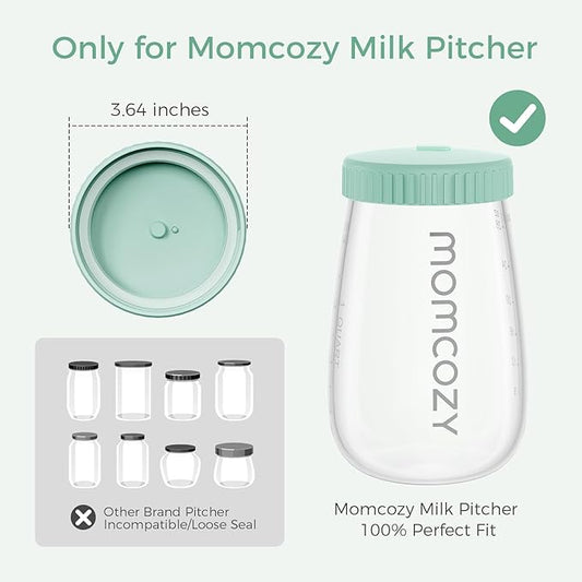Momcozy Glass Breast Milk Pitcher Lid, Leak Proof with Thickened Silicone Seal, Easy-Open Design with Pressure Release Valve, Dishwasher Safe and Food Grade Caps-1 Pack, Green