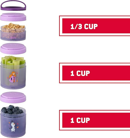Whiskware Disney Princess Frozen, Stackable Snack Containers for Kids, Durable Food Storage Containers for Daycare, Car, and Airplane Travel, Dishwasher Safe, Anna and Olaf