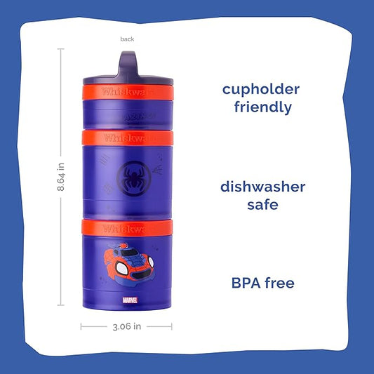 Whiskware Spider-Man Team Spidey Stackable Snack Containers for Babies, Kids, and Toddlers, 3 Stackable Snack Cups for School or Travel, Cupholder Friendly, Peter Parker