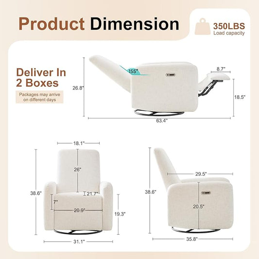CHITA Swivel Rocker Recliner Chair, Power Nursery Glider Recliner, Nursery Rocking Chair with Adjustable Power Headrest, FSC Certified, Solid Wood Base, Cream