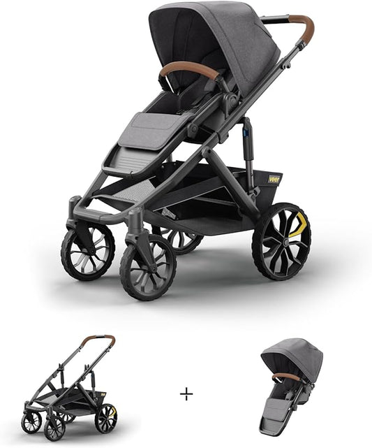 Veer Switch&Roll Stroller with Leather Grips and Leather Bumper Bar | 4 Wheel All-Terrain Stroller with Switchback Seat | Shock Absorbing, Durable, Maneuverable, Collapsible