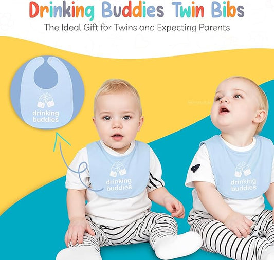 100% Cotton Drinking Buddies Twin Bibs Cute & Practical Unisex Bibs for Twins with Waterproof, Durable, for Everyday Use