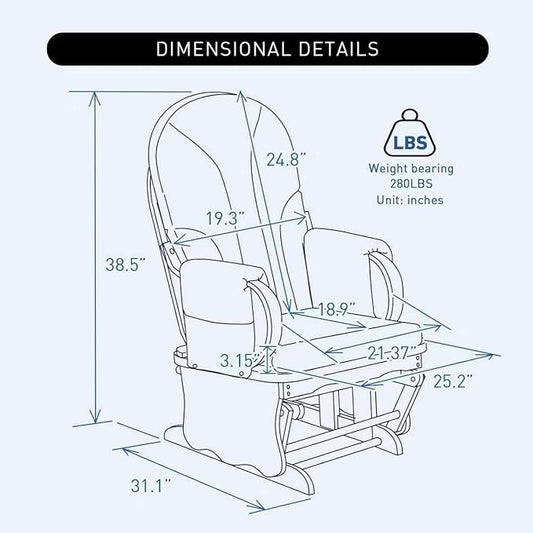 Glider Rocking Chair Nursery with Ottoman Smooth Rocking Motion, Easy to Assemble, Solid Hardwood Base Indoor Adult (Brown)