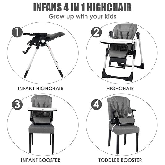 INFANS 4 in 1 High Chair–Booster Seat, Convertible Highchair w/Adjustable Height and Recline,Removable Tray,DetachableCushion, Installation-Free,Simple Fold for Baby, Infant& Toddler