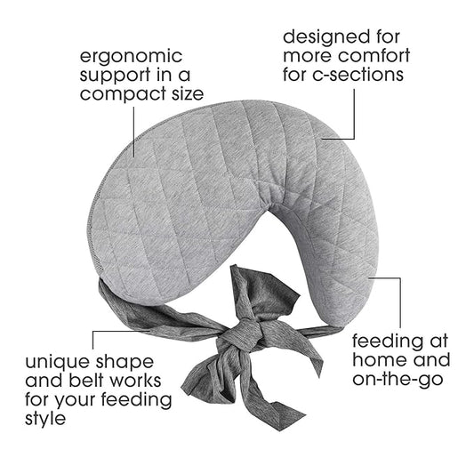 Boppy Anywhere Travel Nursing Pillow, Soft Gray, Plus Sized to Petite with Stretch Belt, Portable Nursing Pillow, Breastfeeding and Bottle-Feeding Support, Machine Washable