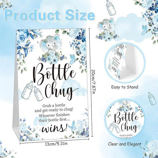 TrelaCo Bottle Chug Baby Shower Game Sign 20 Pcs Baby Bottles Shower Favor Plastic Greenery Flowers Bear Elephant Butterfly Gift Set for Gender Reveal Party(Cute Elephant,Blue)