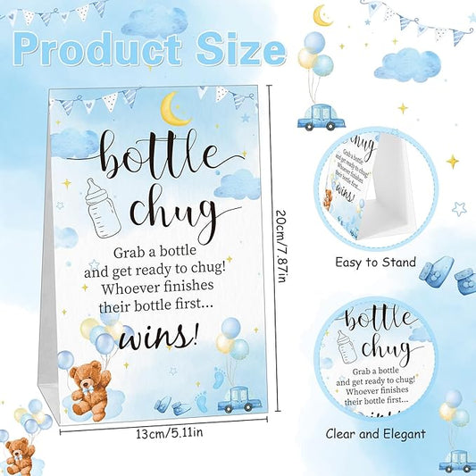 TrelaCo Bottle Chug Baby Shower Game 20 Pcs Baby Bottles Shower Favor with 1 Cute Bear Theme Sign for Gender Reveal Party Supplies Gifts(Blue)