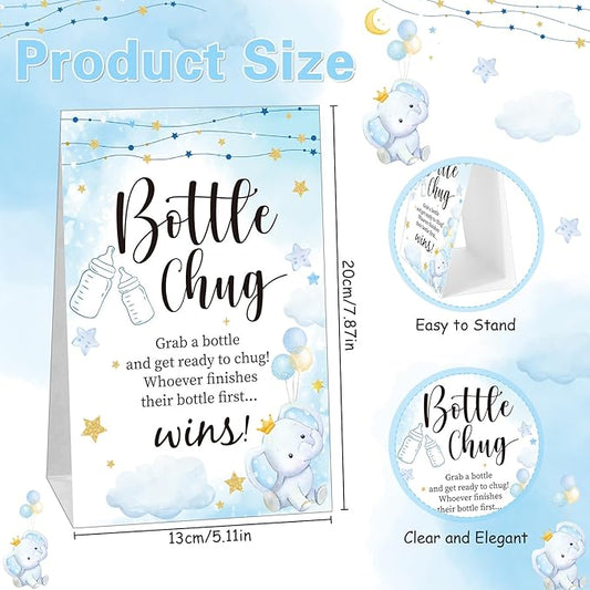 TrelaCo Bottle Chug Baby Shower Game 20 Pcs Baby Bottles Shower Favor with 1 Elephant Theme Sign for Gender Reveal Party Supplies Gifts(Blue)