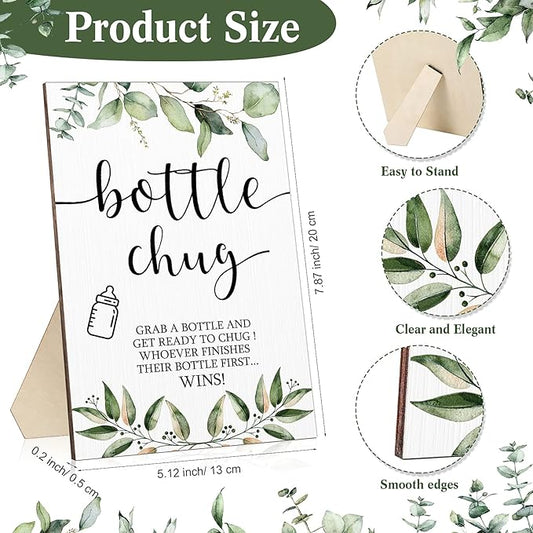 Roowest Bottle Chug Baby Shower Game Favors 12 Pcs Baby Bottles Shower Favor with 1 Wooden Sign for Gender Reveal Party Supplies Gifts(Green Leaves)