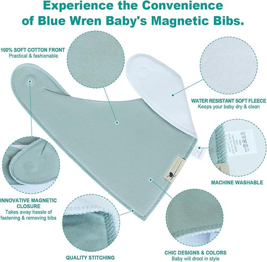 Blue Wren Magnetic Bandana Drool Bibs 5-pack - Magnetic Closure Baby Bibs - Safe, Easy, Chic Teething Bib