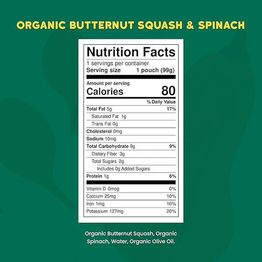 Serenity Kids 6+ Months Veggie Puree Baby Food Pouches - Butternut Squash & Spinach - USDA Organic No Added Sugar Allergen Free BPA-Free - Healthy Toddler Food - 3.5 Oz, 12 Pack