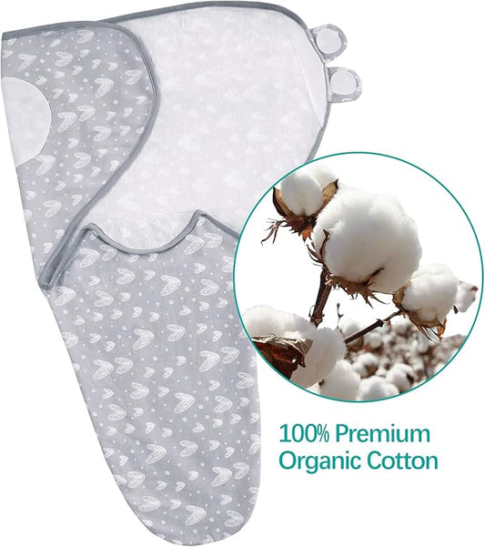 Biloban Baby Swaddles 0-3 Months for Boy & Girl, Cotton Swaddle Blanket, Newborn Essentials, Lovely Grey Print, 4 Pack