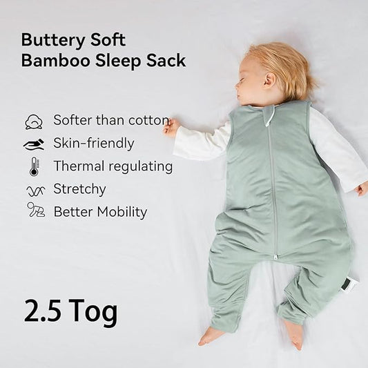 Rayon Made From Bamboo Sleep Sack 6-12 Months 1.0 Tog Ultra Soft Toddler Sleep Sack with Feet 2-Way Zipper Unisex Baby Sleeping Bag with Legs Baby Wearable Blanket All-year-around-Green