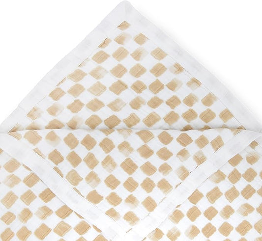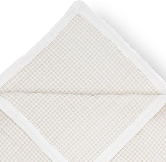 Little Unicorn Newborn Receiving Quilt | Ultra- Soft, Multi-Layered Muslin Fabric | Gift for Newborns & on-The-go (Tan Gingham)