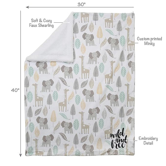 Lambs & Ivy Jungle Friends Elephant/Giraffe Safari Soft Fleece Baby Blanket