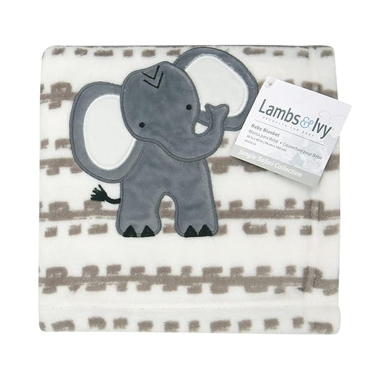 Lambs & Ivy Jungle Safari White/Tan Plush Minky Elephant Nursery Baby Blanket