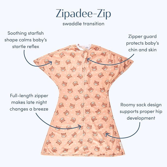 SleepingBaby Zipadee-Zip Transition Swaddle - Cozy Baby Swaddle Blanket with Zipper Convenience - Roomy Wearable Blanket for Easy Diaper Changes - Cozy Cub, X-Small (3-6 Month)