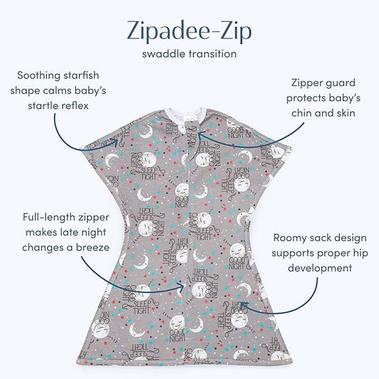 SleepingBaby Zipadee-Zip Transition Swaddle - Cozy Baby Swaddle Blanket with Zipper Convenience - Roomy Wearable Blanket for Easy Diaper Changes - Goodnight Moon, Large (12-24 Month)