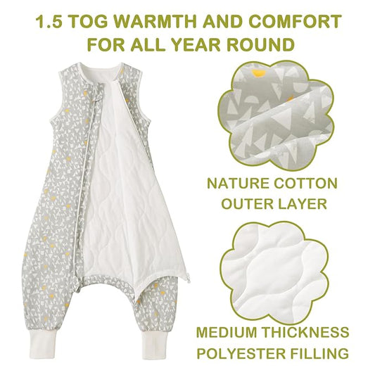Super Soft 1.5 TOG Sleep Sack with Legs, 100% Organic Cotton Warm Comfy All Season Toddler Sleep Sack with Feet, Graphic, Size L