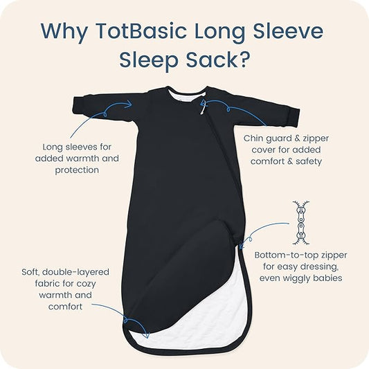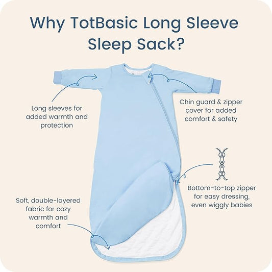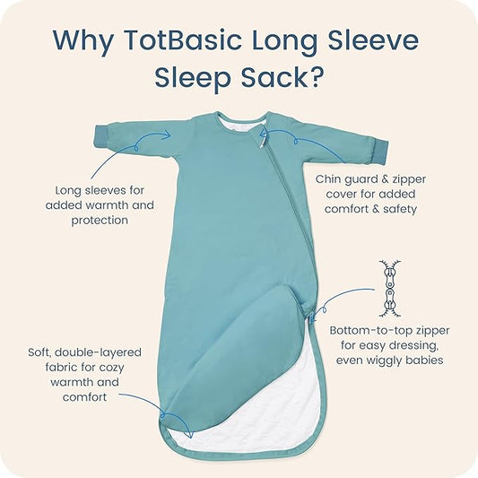 Baby Sleep Sack Long Sleeve Wearable Blanket 1.0 TOG, Premium Soft Infants Sleeping Bags with 2-way Zippers