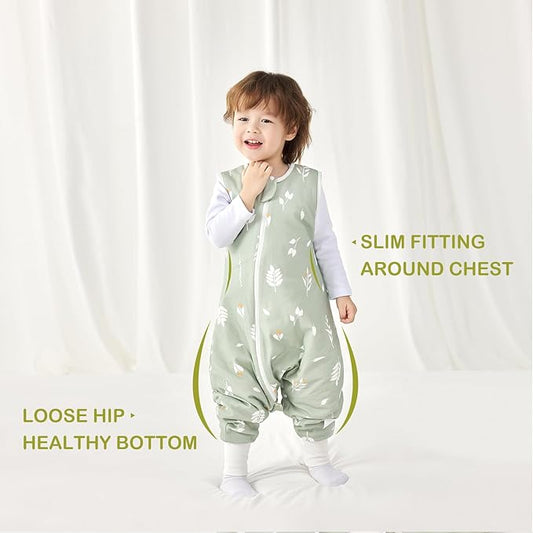 Super Soft 1.5 TOG Sleep Sack with Legs, 100% Organic Cotton Warm Comfy All Season Toddler Sleep Sack with Feet, Foliage, Size L
