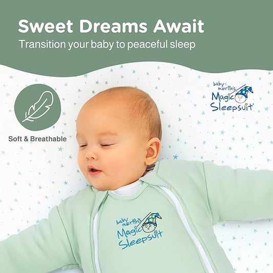 Magic Sleepsuit Baby Merlin's Cotton Baby Swaddle Transition Product - Soft and Cozy Design, Double Zipper for Easy Diaper Changes, Promotes Safe Sleep, 3-6 Months - Sage Green - Small 12-18lbs
