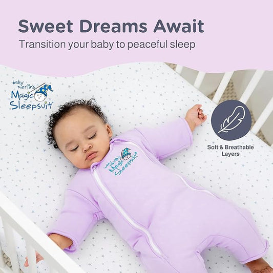 Magic Sleepsuit Baby Merlin's Cotton Baby Swaddle Transition Product - Soft and Cozy Design, Double Zipper for Easy Diaper Changes, Promotes Safe Sleep, 3-6 Months - Lavender - Small 12-18lbs
