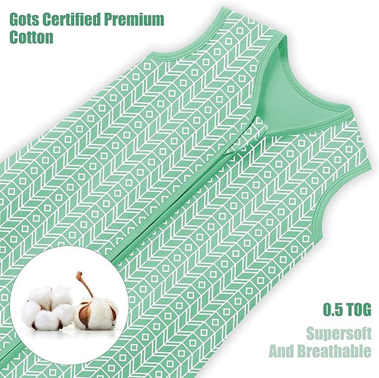 SWEET DOLPHIN Baby Sleep Sack 6-12 Months - 100% Cotton 2-Way Zipper TOG 0.5 Infant Wearable Blanket, Newborn Essentials Toddler 3 Pack Sleeping Sacks - Green