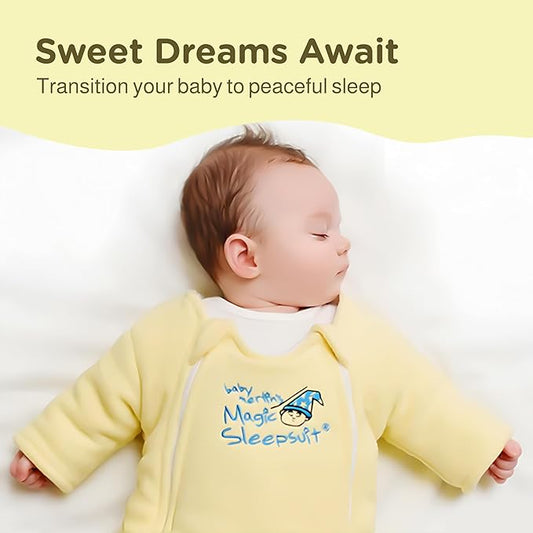 Magic Sleepsuit Baby Merlin's Cotton Baby Swaddle Transition Product - Soft and Cozy Design, Double Zipper for Easy Diaper Changes, Promotes Safe Sleep, 3-6 Months - Yellow - Small 12-18lbs