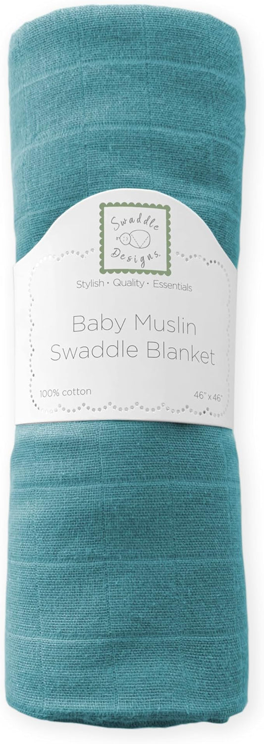 SwaddleDesigns Cotton Muslin Swaddle Blanket, Receiving Blanket for Baby Boys & Girls, Best Registry Gift, 46x46 inches, Teal