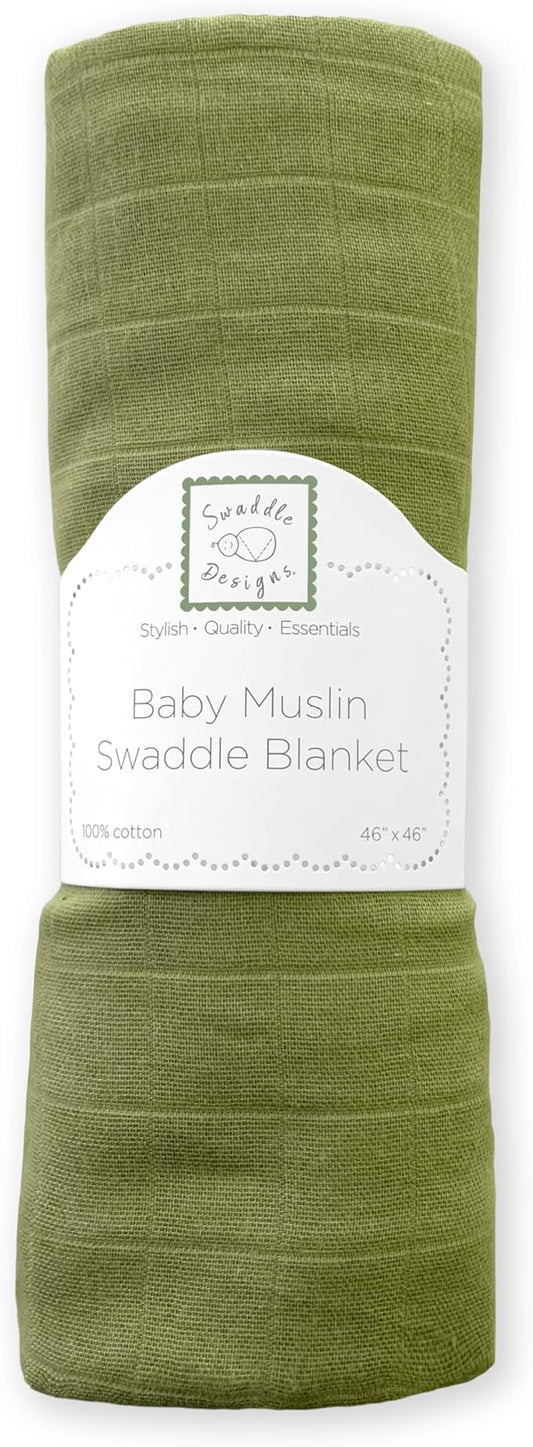 SwaddleDesigns Cotton Muslin Swaddle Blanket, Receiving Blanket for Baby Boys & Girls, Best Registry Gift, 46x46 inches, Green Turtle