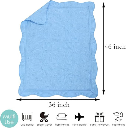 Embossed Baby Quilt Neutral Durable Lightweight Baby Blankets Four Seasons Cotton Nursery Bed Blankets for Personlized Monogram 46x36 Inches (Baby Blue)