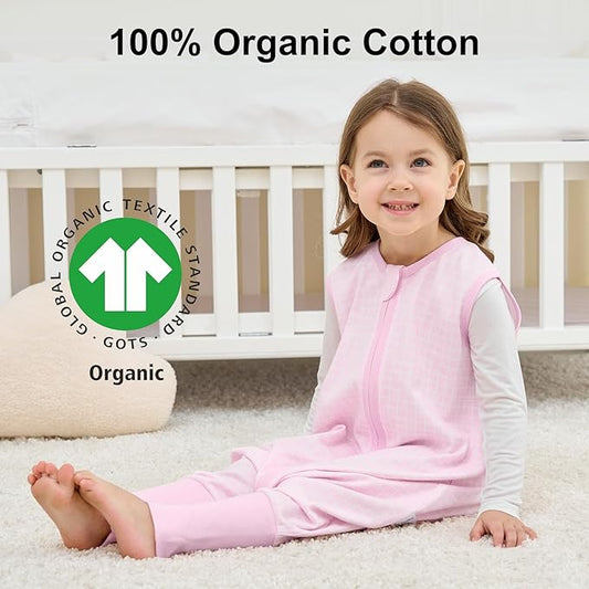 Yoofoss Toddler Sleep Sack with Feet 12-24 Months 100% Organic Cotton Baby Sleep Sack with Legs Toddler Wearable Blanket with 2-Way Zipper