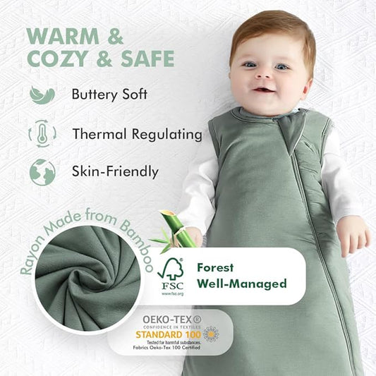 HAPIU Unisex Rayon Made from Bamboo Baby Sleep Sack TOG 1.0, 2-Way Zipper YKK, Wearable Blanket Baby