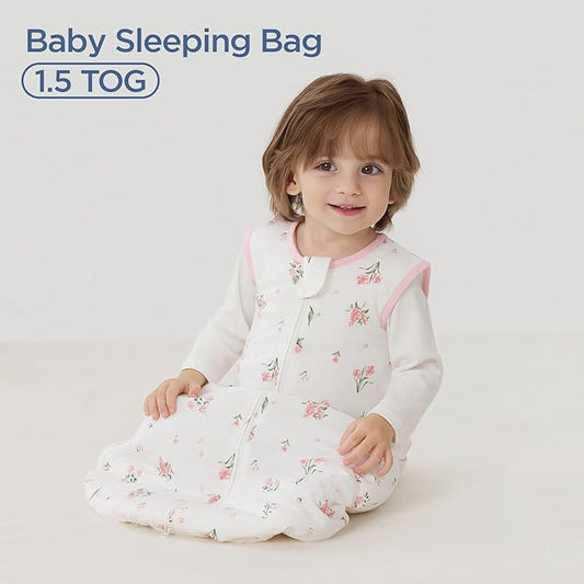 Duomiaomiao 1.5 TOG Baby Sleep Sack 100% Cotton Four Season Baby Wearable Blanket, Breathable Comfy Toddler Sleeping Sack