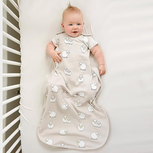 Woolino 4 Season Sleep Sack - Ultimate Merino Wool and Organic Cotton Sleeping Bag - Two-Way Zipper Adjustable Universal Size Sleep Sack for Baby (2-24 Months) - Sheep